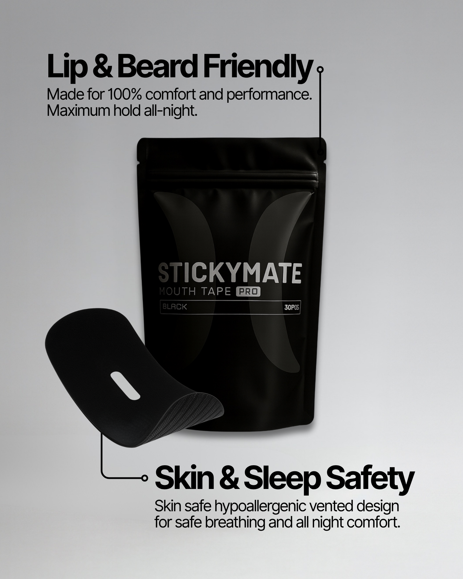 Sticky Mate Mouth Tape keeps your lips sealed softly so your body can do what it's designed to: breathe through your nose. Wake up more rested, hydrated, and focused.